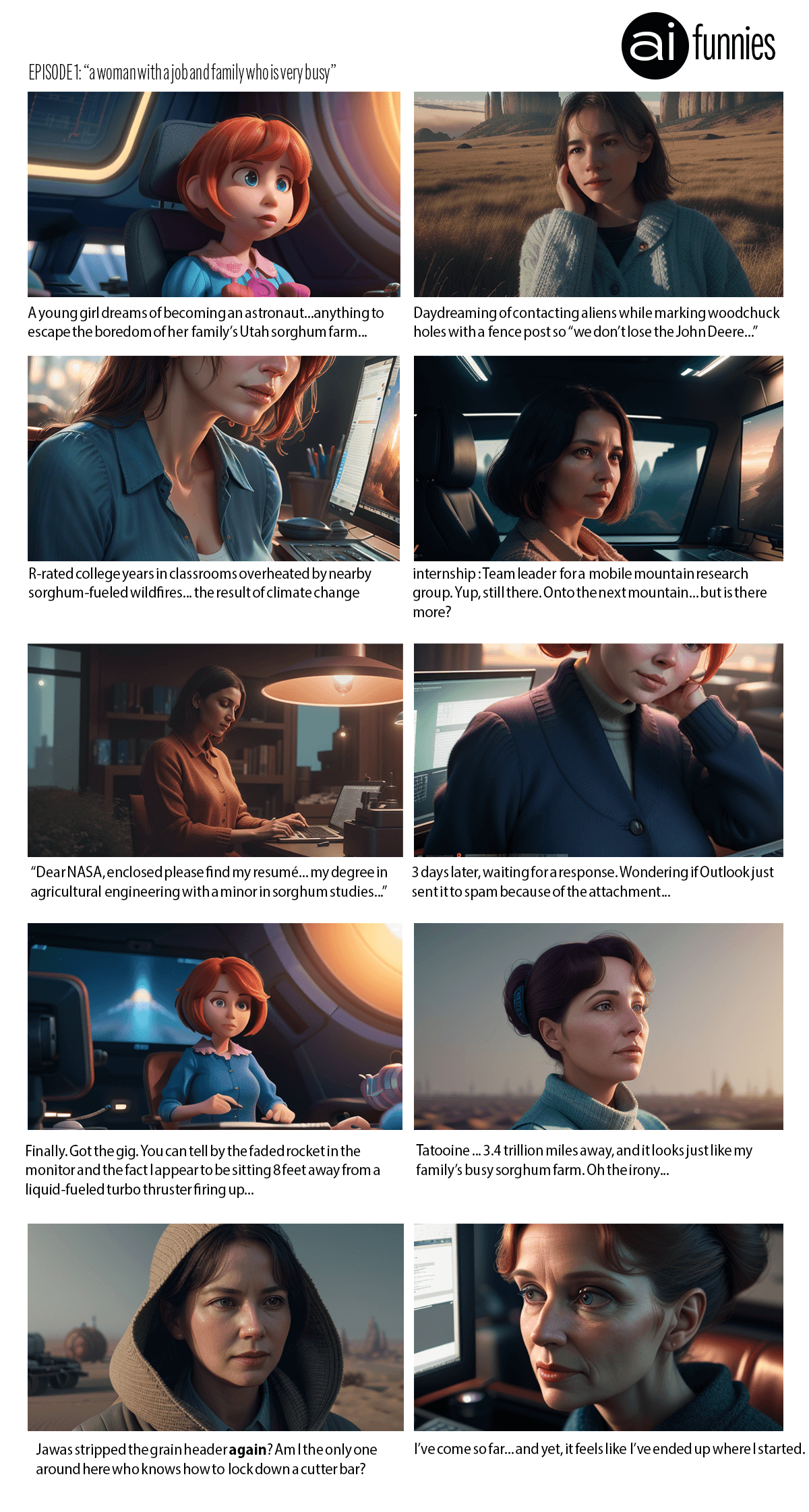 But just imagine how this technology might have been received. Imagine my delight if I had been flooded with diverse images of women of many ages and cultures, working at many different kinds of jobs to support their equally-diverse families. Because that's what's out there. That's reality. Meaning the only thing AI got right was the artificial part.