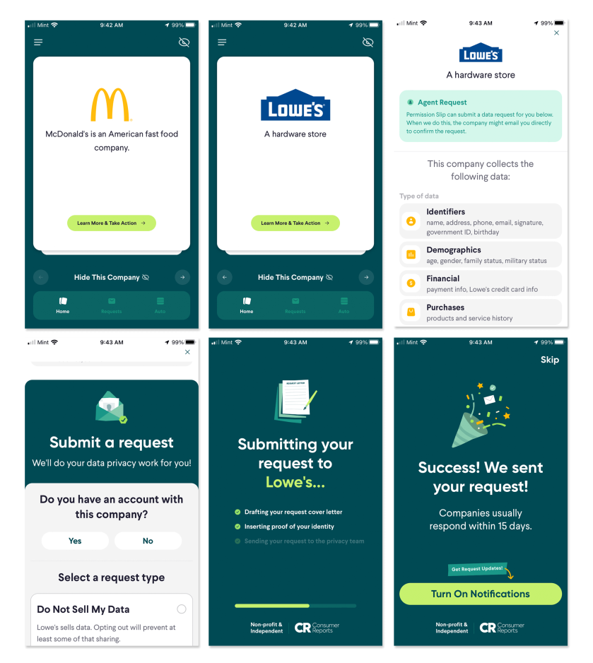 - Download the Permission Slip app by Consumer Reports. The Washington Post has a good article describing how it works – and yes, it took a bit of doing to get my account established (they may have been busy) but once in, you page through companies, see what they are farming, and if you have an account? Either request that they not sell your data, or close the account from within the app. You do not need any logins or passwords to make requests.