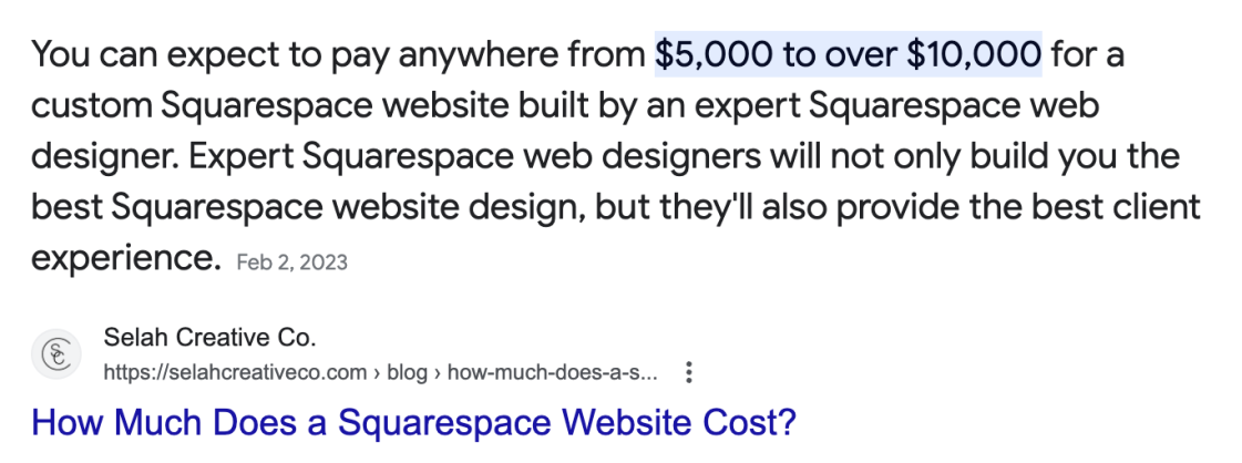 | Squarespace | $2,500 - $10,000 |