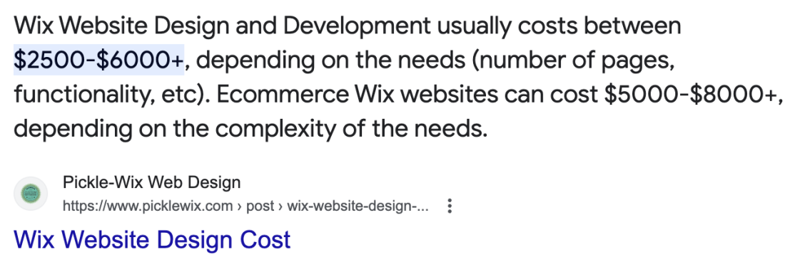 | Wix | $2,500-$6,000 or $5,000-$8,000 with commerce |